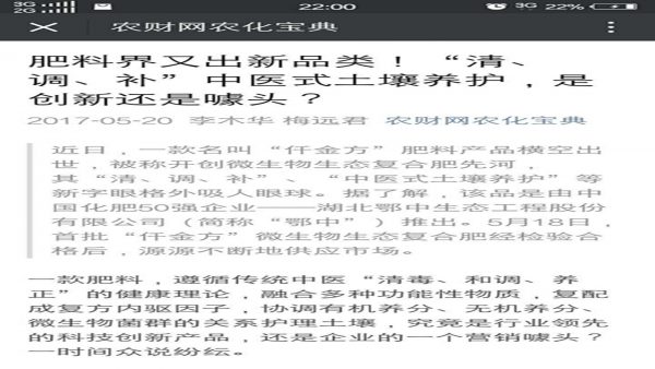 《南方農(nóng)村報》新媒體關注鄂中仟金方微生物生態(tài)復合肥:肥料屆又出新品類?“清、調(diào)、補”中醫(yī)式土壤養(yǎng)護,是創(chuàng)新還是噱頭?