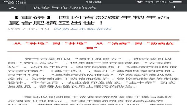 《農(nóng)資與市場》雜志刊出“國內(nèi)首款微生物生態(tài)復(fù)合肥橫空出世”引起關(guān)注,目前已有10余經(jīng)銷商預(yù)定咨詢該產(chǎn)品