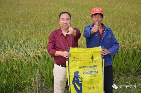 中南大區(qū)總經(jīng)理李九稽總結(jié)分析介紹:鄂中仟金方是把無(wú)機(jī)養(yǎng)分、有機(jī)質(zhì)、微生物菌群及復(fù)合內(nèi)驅(qū)因子有機(jī)結(jié)合于一體的綜合集成科技成果,體現(xiàn)無(wú)機(jī)化學(xué)肥料、有機(jī)肥料以及微生物肥料的綜合效果,是當(dāng)前農(nóng)作物的首選肥料。鄂中仟金方肥料能夠利用空氣中的氮,通過(guò)有益菌生長(zhǎng)代謝產(chǎn)生相應(yīng)的酶和酸,可對(duì)土壤中難溶性的磷、鉀肥(土壤中難溶性磷肥占95%,難溶性鉀占98%)進(jìn)行分解,從而成為水稻所能吸收的磷鉀營(yíng)養(yǎng)。因此能夠大大提高水稻對(duì)肥料的利用率,從而減少肥料的施用量。在受災(zāi)嚴(yán)重的情況下,還能保證水稻穩(wěn)產(chǎn)不減產(chǎn),甚至取得了節(jié)本增產(chǎn)增效的良好效果。