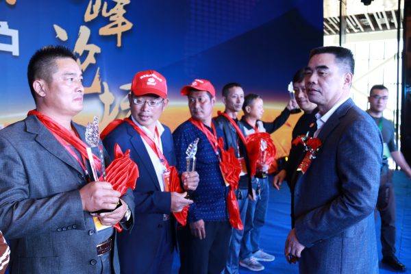 楊才超董事長(zhǎng)(右)為獲獎(jiǎng)人員頒獎(jiǎng)