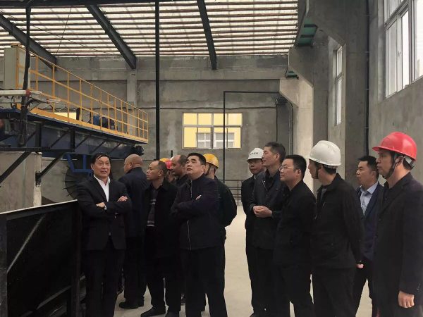 楊才超董事長(zhǎng)(左三)視察有機(jī)肥生產(chǎn)線(xiàn)