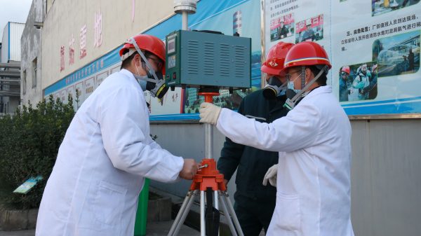 演練現(xiàn)場(chǎng),只見警戒人員封鎖現(xiàn)場(chǎng)實(shí)施現(xiàn)場(chǎng)控制,嚴(yán)禁無關(guān)車輛和人員誤入“事發(fā)現(xiàn)場(chǎng)”,消防人員快速從上風(fēng)口迂回到液氨罐區(qū),使用噴淋裝置對(duì)泄漏液氨進(jìn)行再稀釋。同時(shí),4名消防員迅速穿戴好防化服,正壓呼吸器,進(jìn)入“現(xiàn)場(chǎng)”進(jìn)行檢查,醫(yī)療人員對(duì)受傷人員快速救護(hù),檢查修人員緊急處理泄漏點(diǎn)。