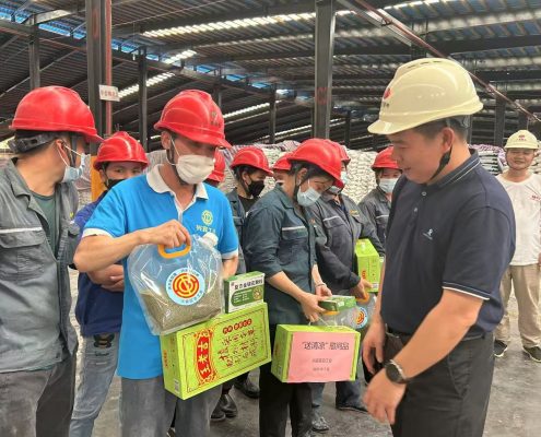 興賓區(qū)委副書記唐彥樂 為廣西鄂中職工“送清涼”