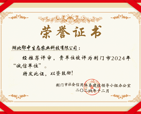 誠以立身 信以行遠(yuǎn) 鄂中農(nóng)科獲評“2024年度誠信單位”