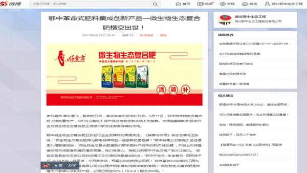 《中國新型肥料網(wǎng)》.《肥料信息網(wǎng)》等新媒體強烈關(guān)注鄂中仟金方微生物生態(tài)復合肥:鄂中生態(tài)革命式肥料集成創(chuàng)新產(chǎn)品—微生物生態(tài)復合肥橫空出世!