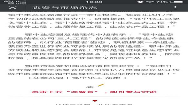 鄂中市場策劃部鄧君清自信坦言:“鄂中仟金方微生物生態(tài)復(fù)合肥將引領(lǐng)億萬中國農(nóng)民見證傳統(tǒng)中醫(yī)理念造福中國綠色生態(tài)農(nóng)業(yè)的傳奇故事!”