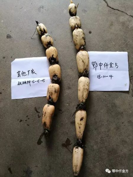 三是改善品質(zhì):施用鄂中仟金方后能增加地溫,提早上市,顏色白嫩,不易生銹,口感好、賣相好;能促進(jìn)根系從縱深發(fā)展到橫向發(fā)展,不下扎,藕帶易扯,輕松方便。
